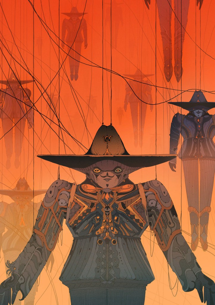 The War Mothers lead their daughters where they please, but always meet once a year in the midst of the Vaarnish Interior for the Great Gloating, a ten-day orgy of drinking and feasting at which each Mama brags of her daughters’ outrages and victories. The centrepiece of the Great Gloating are the ritual puppet shows, in which the severed heads and flayed skins of the Cacklemaws’ enemies are mounted upon frames of wood and metal, and compelled through the tautening of wires to caper and dance, and recount in rhyming song the stories of their ignominious defeats. The Cacklemaw are not to be underestimated as foes, and many an overconfident Hegemony officer or Faa nomad chieftain has ended their days as a capering corpse, dancing on strings to the sound of screaming, bestial laughter.