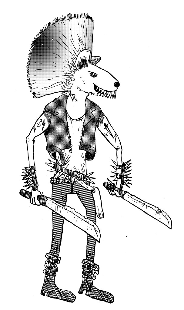 Whatever the truth, these beings have plagued Vaarn for centuries, and the mystery of their reproductive cycle has yet to be solved. In battle the Cacklemaw are formidable foes, with quick reflexes, prodigious strength, and near suicidal courage. They raid human settlements for water, meat, and prisoners, for although the stories of ‘cackle-grooms’ are unconfirmed, it is certainly true that the hyena-women will use captured humans as slaves and for food, if the mood strikes them. They dislike other newbeasts and will generally kill them if they can.