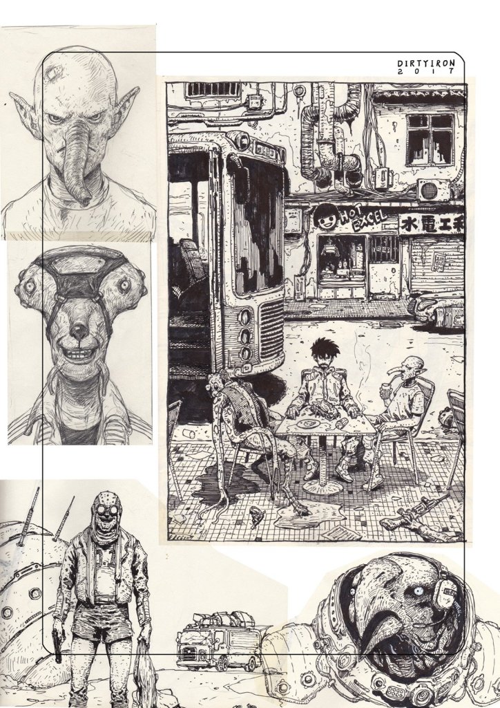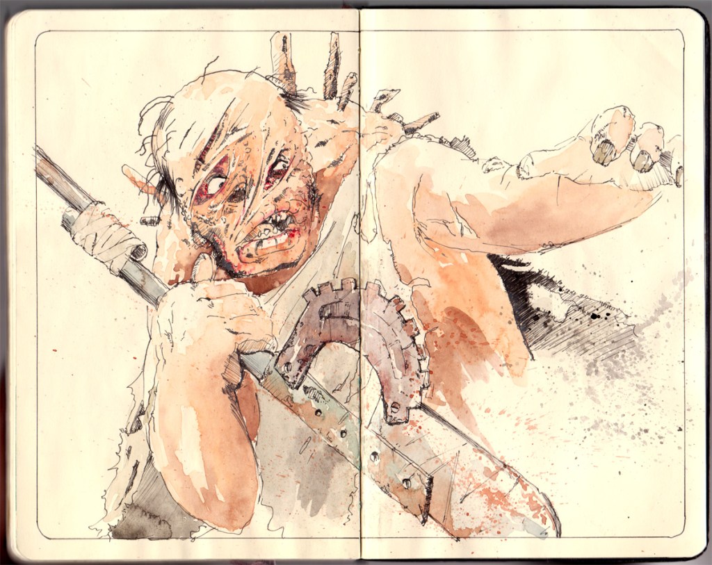 From this I think we have a pretty clear picture of Uz: she is a wandering scholar who used to find work as a Sin Eater, someone who would ritually eat a meal on the graves of the dead to take their sins into herself. Her mutations suggest to me that her club foot is detachable in some way; perhaps she uses it as a weapon to defend herself. I imagine it being rather heavy and thick with keratin. I wonder for what reason her friend is missing, and why she moved away from her work as a Sin Eater. The two must be connected somehow…