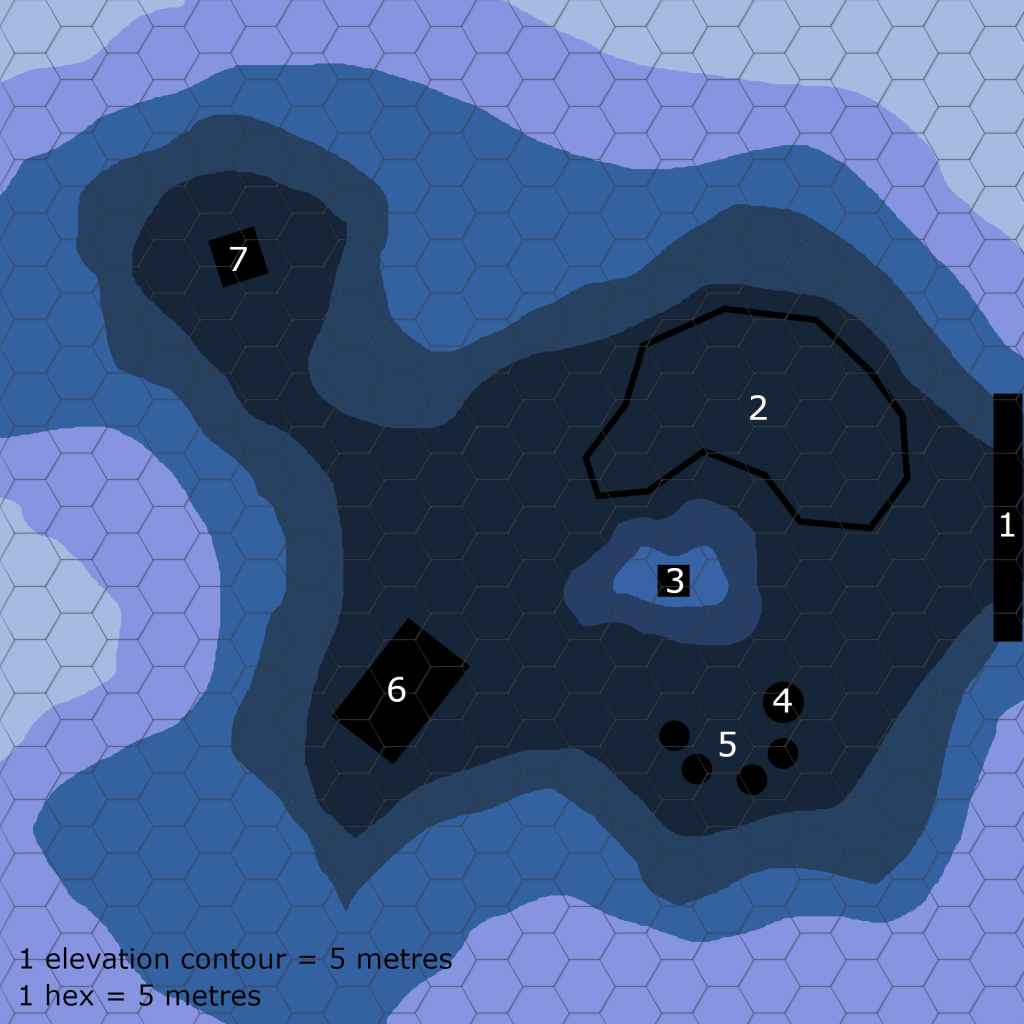 ‘Bepis Vault was a hypergeometric research facility constructed in the late Autarchy. The focus of its research was the effect of repeated transfer between dimensionalities on living subjects. It has remained undisturbed beneath the azure dunes for centuries and has only recently been uncovered by the vagaries of the wind. Four former test subjects guard the entrance, the ghost of a former researcher mourns his mistakes, and a deadly fractalisk lies in wait in the armory.’